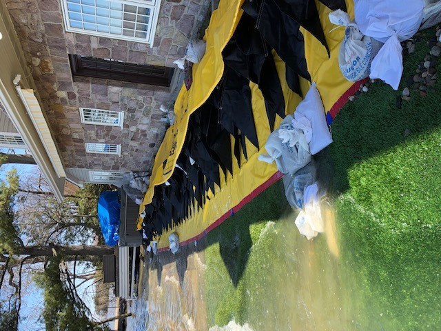 La barrera de agua se monta con tabiques de tejido de polietileno, que es un tejido ligero y muy resistente a los desgarros.